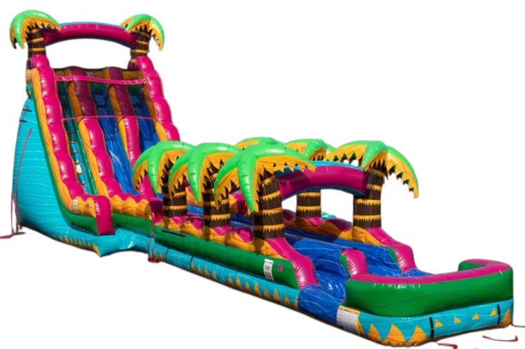 Make a big splash with this Teal Crush Dual Lane Slip & Slide with Pool, a vibrant inflatable water rental built for fast-paced fun and nonstop competition. With two lanes, guests can race side by side as they slide through the colorful teal-themed course and finish with a refreshing splash in the pool at the end. It’s a great choice for parties, school events, summer celebrations, and any gathering that needs an exciting water attraction everyone can enjoy.